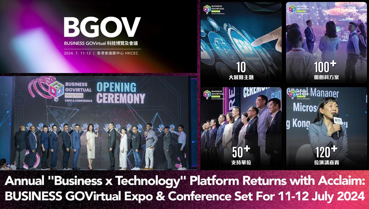 HONG KONG SAR - Media OutReach Newswire - 9 July 2024 - The annual BUSINESS GOVirtual (BGOV) Expo & Conference, focused on innovation and technology, will be held on 11-12 July 2024 at the Hong Kong Convention and Exhibition Centre.